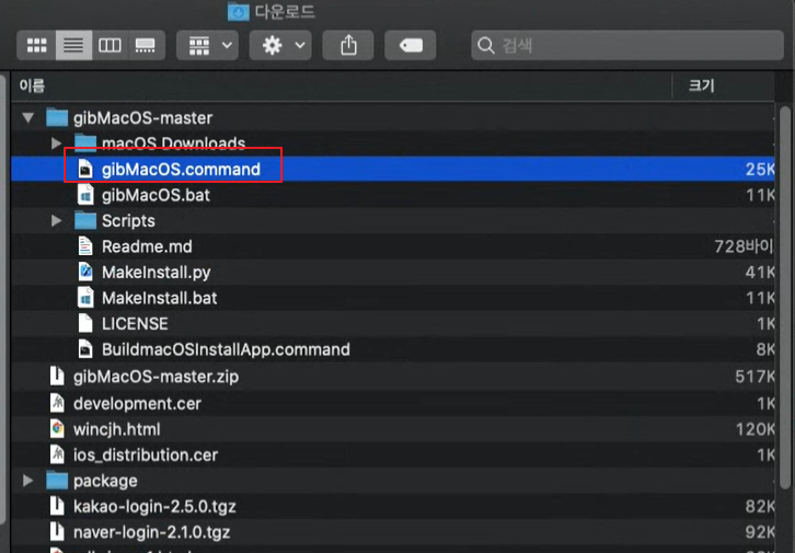 다운받은 압축파일을 풀고 gitMacOS.command를 실행합니다.