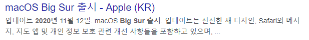 2020년 11월 12일자로 macOS Big Sur가 정식출시 되었습니다. 며칠 전에 겨우 카탈리나 초기버전에서 업그레이드를 해놨는데 금새 또 새 OS가 나올 줄이야... 맥은 업데이트를 따라가지 않으면 나중에 피 볼 우려가 있기 때문에 (Xcode와 호환 등 신경쓸 게 많아요.) 미리 해둡니다.