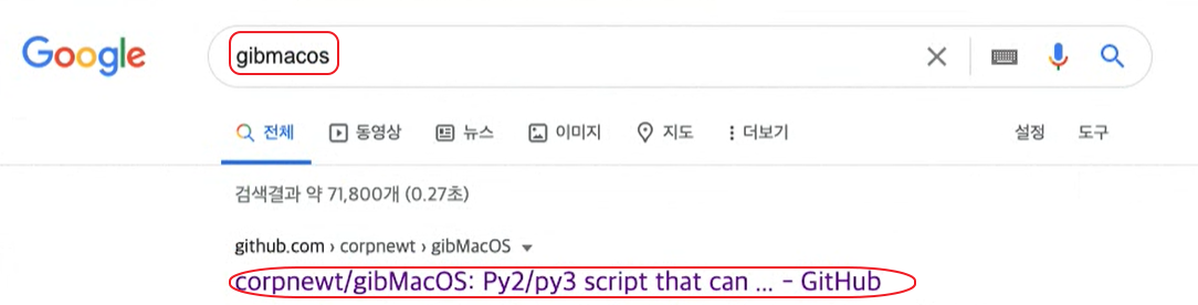 구글에서 'gibmacos'를 검색해서 맨 첫번째 나오는 github에 접속합니다.