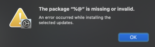 The package "%@" is missing or invalid. An error occurred while installing the selected updates.