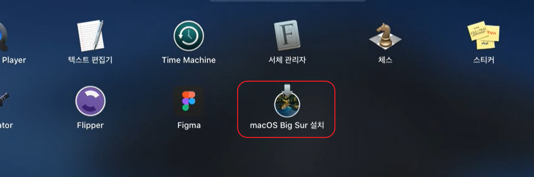 Launch Pad에 가면 macOS Big Sur 설치 파일이 보일거예요.