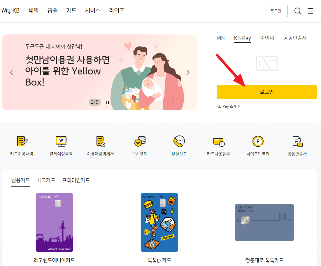 KB 국민카드 홈페이지 화면