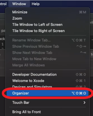 일단 Archive는 됐으니 Xcode 메뉴 툴바 > Window > Orginizer 에 들어가면 Archive된 빌드를 확인할 수 있다.