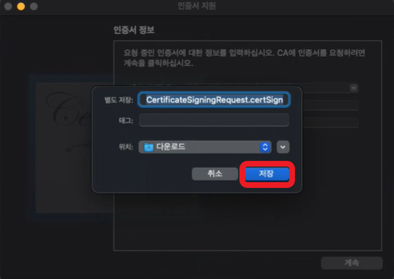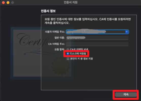 위와 같은 화면이 뜨고 디스크에 CSR 파일을 잘 저장해둔다.