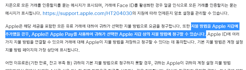 최근 애플 서비스 이용 국내 약관에 "지불 방법을 애플 지갑에 추가했을 경우, 애플은 애플페이를 사용해 귀하가 선택한 애플 지갑 상의 지불방법에 청구할 수 있다"는 내용이 추가되어 애플페이 도입이 확정 된 것으로 보입니다.
