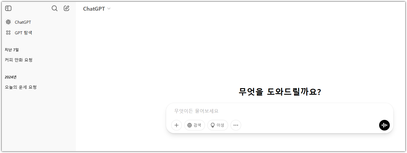 ChatGPT 홈페이지 첫 화면