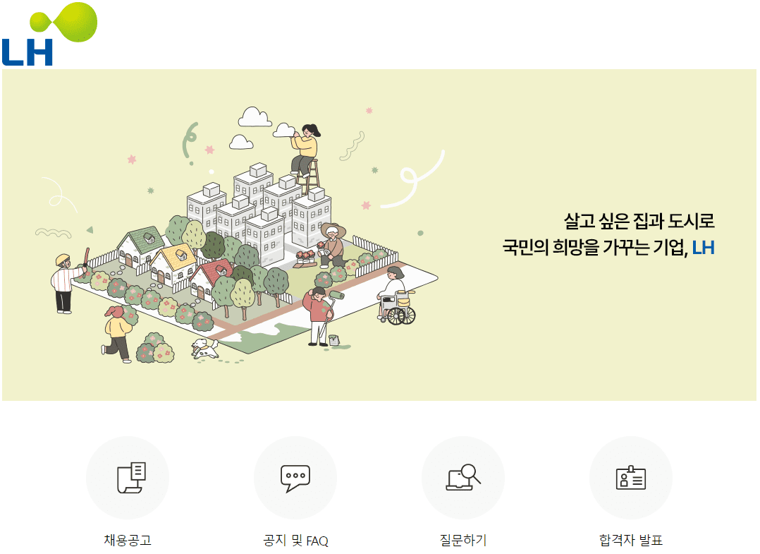 한국토지주택공사(LH공사)에 입사를 원하신다면, 채용 홈페이지에서 모집공고 확인 후 입사지원을 하시면 됩니다. 한국토지주택공사 채용 홈페이지를 살펴보고 바로가기까지 알아보겠습니다.
