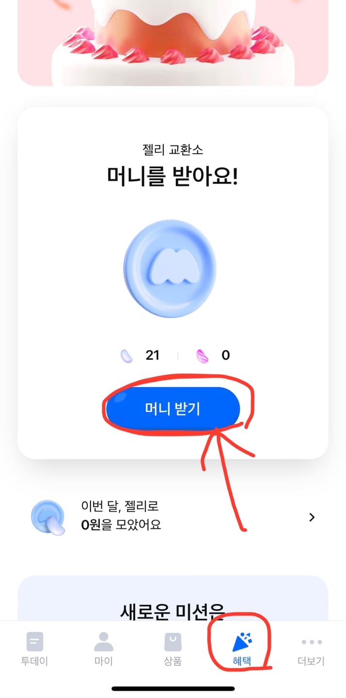 삼성 모니모 앱의 혜택 탭 > 머니 받기를 누르면 모은 젤리를 모니머니로 교환 할 수 있습니다.