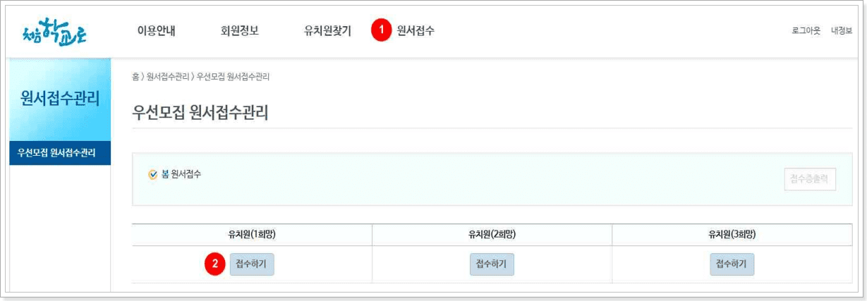 유치원 입학 원서접수 방법