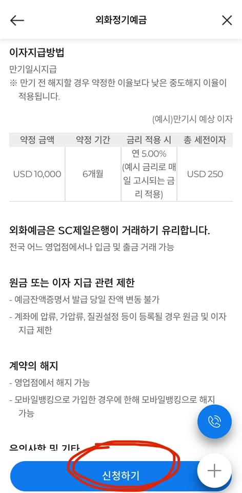 SC제일은행의 외화 정기예금 상품은 외화예금 중 이자율이 가장 높고, 잦은 입출금이 필요없는 외화 예치시 유리 합니다. 특히, 달러화 예금에 대해 최대 5%대의 고금리를 제공하고 있어, 금리 인상을 활용한 재테크에 관심이 있는 분들 사이에서 인기를 끌고 있습니다.