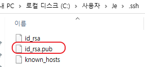 7. .ssh 폴더에 id_rsa.pub 파일을 메모장이나 NotePad로 열어보면 key값이 보일 것이다. 전체 복사해서 아까 SSH key 값 입력하는 곳에 붙여준다.