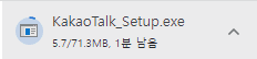 이렇게 KakaoTalk_Setup.exe 파일 다운로드가 완료되어 클릭하면 바로 설치가 진행 됩니다. 용량은 71.3MB 입니다.