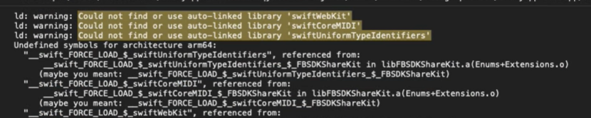 swift 관련 라이브러리들이 있을 경우 자동 연결에 실패해서 에러가 나는듯 하다.